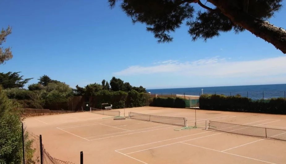Concierge, parc privé de 5 hectares, 3 courts de tennis en terre battue, piscine de 33 m, plage privative, aire de jeux pour enfants, plusieurs places de parking complètent cet appartement exceptionnel.