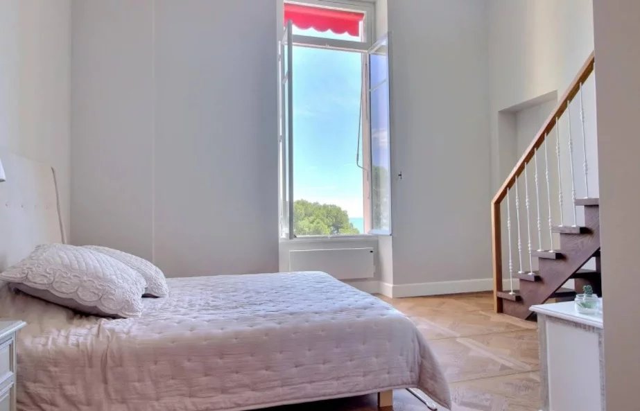 L'appartement comprend un hall d'entrée, une grande cuisine équipée avec salle à manger, un salon avec deux balcons et vue mer, une chambre de maître avec sa salle de bain et mezzanine, 3 chambres, 2 salles d’eau, wc invités, dressing dans chaque chambre.